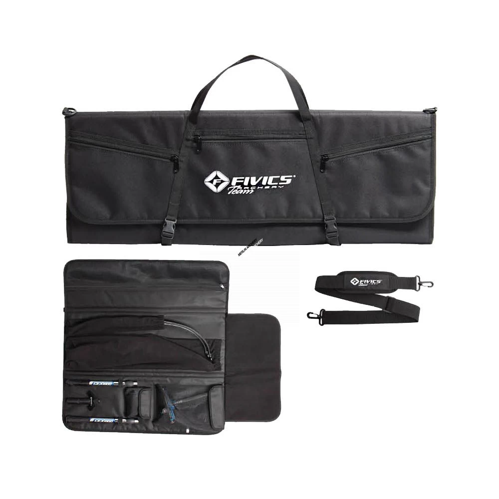Compact folding case for storing riser, limbs and accessories.